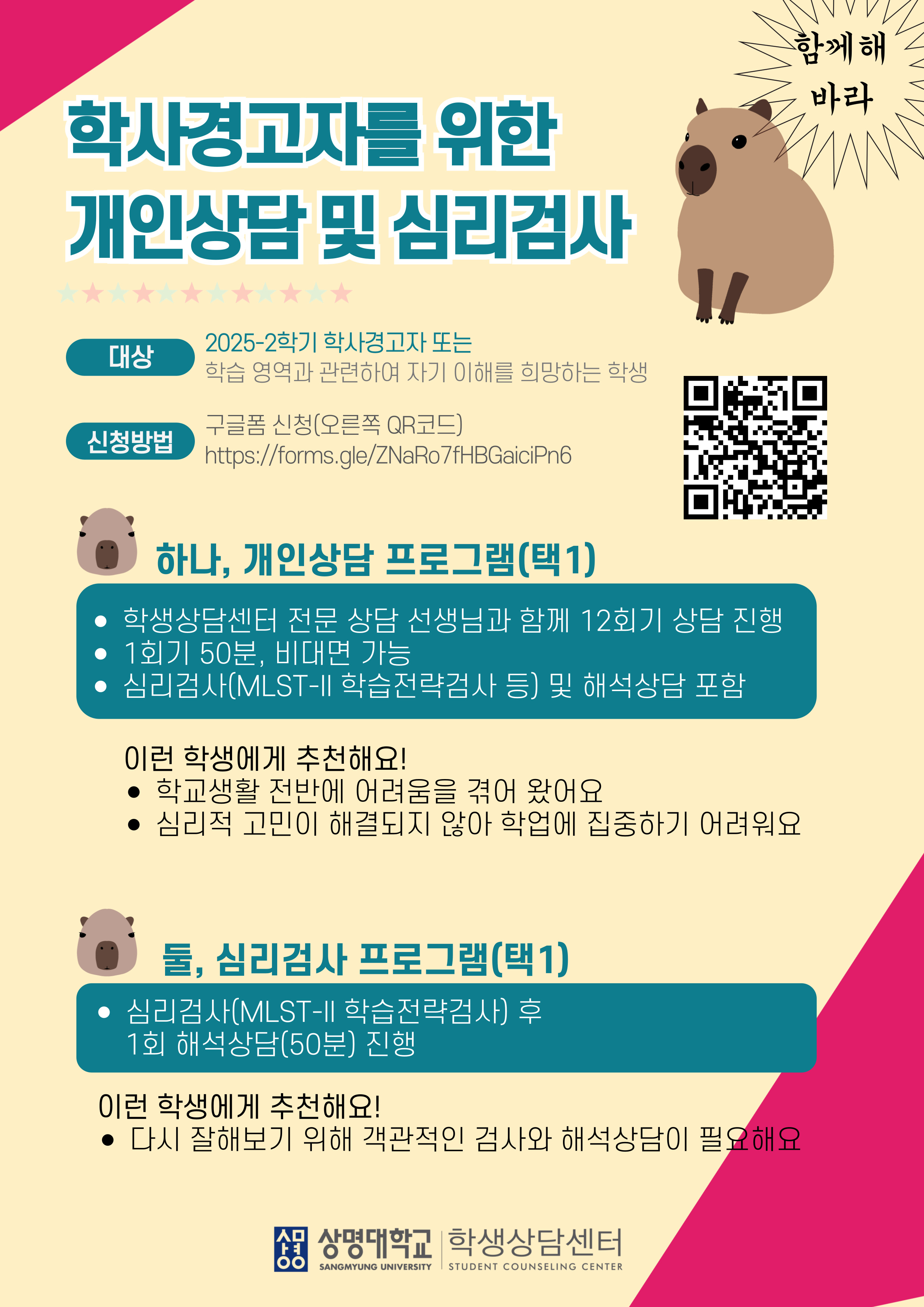 서울 [학생생활] [학생상담센터(서울)] 25-2 학사경고자를 위한 개인상담 및 심리검사 안내 -