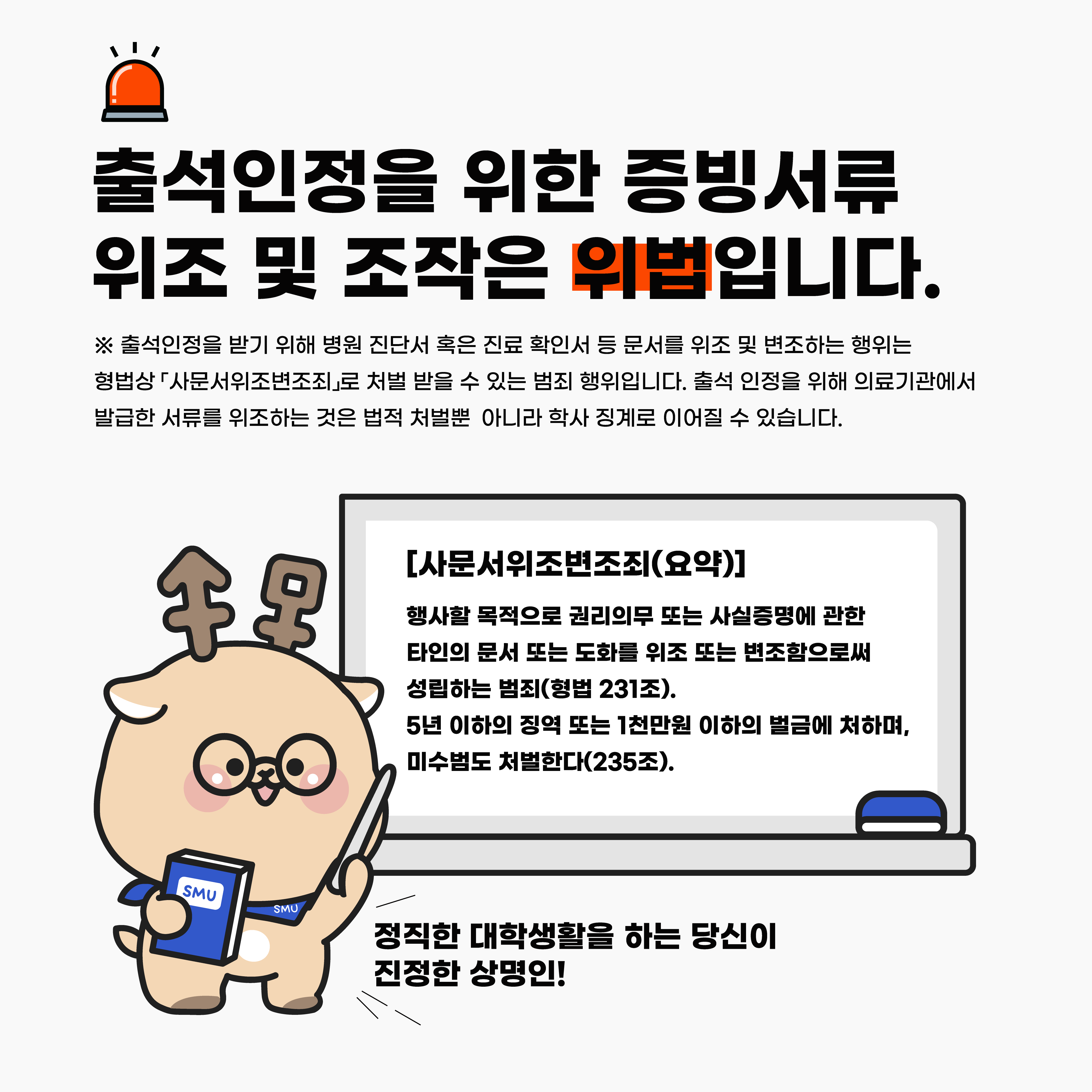 서울 [학사] [학사운영팀] 출석인정을 위한 증빙서류 위조 및 조작 관련 안내 -