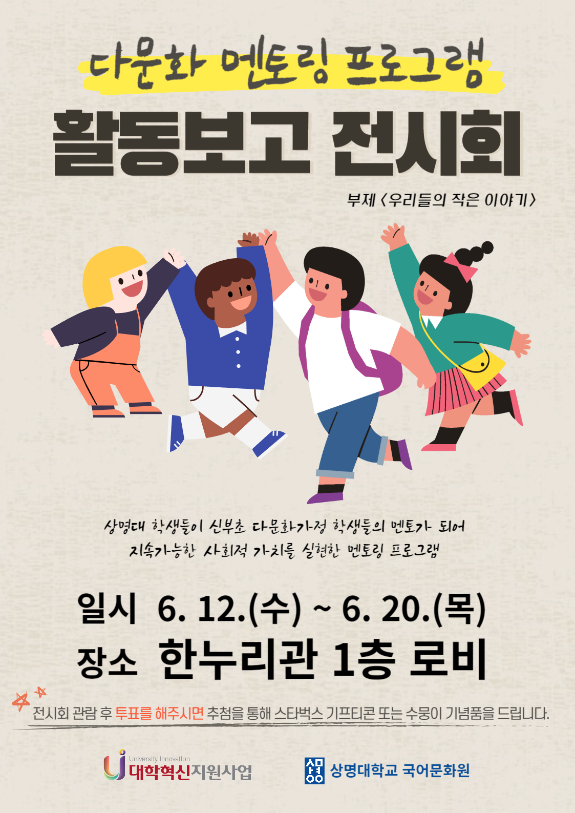 - [홍보] 상명대 국어문화원 다문화 멘토링 프로그램 활동보고 전시회 개최